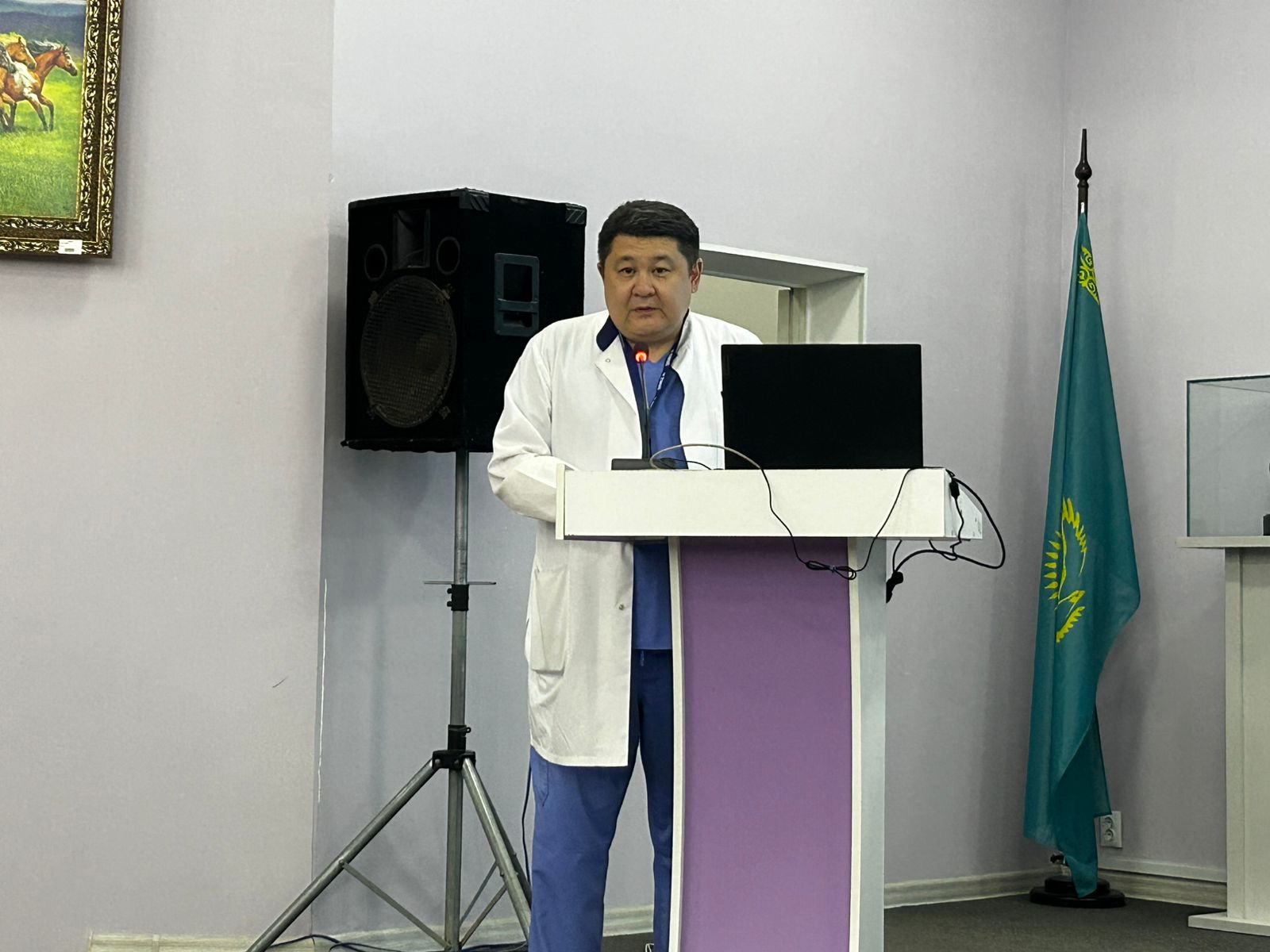 С приветственной речью к собравшимся обратился заместитель Председателя Правления по клинической деятельности Бахытжан Толегенович Онгарбаев. Он подчеркнул героизм, стойкость и самопожертвование поколения победителей, благодаря которым мы живём под мирным небом, а также выразил искреннюю признательность защитникам Отечества и медицинским сёстрам, посвятившим свою жизнь служению людям.