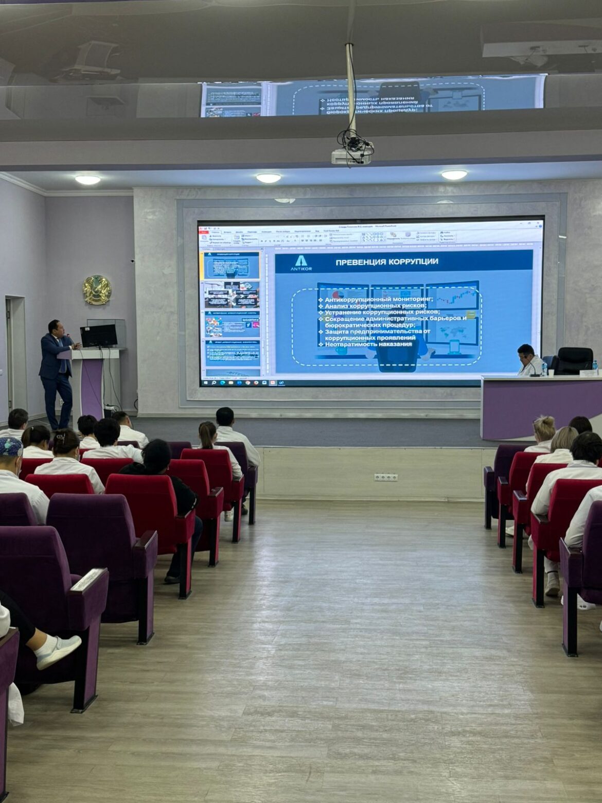 1 қазан күні Қазақ онкология және радиология ғылыми-зерттеу институтына Қазақстан Республикасы Сыбайлас жемқорлыққа қарсы іс-қимыл агенттігінің (Сыбайлас жемқорлыққа қарсы қызмет) Алматы қаласы бойынша департаменті басшысының бірінші орынбасары – Ғалымов Жарқын Сайлауұлы келді.Сапардың мақсаты: Сыбайлас жемқорлыққа қарсы іс-қимыл, «ҚазОРҒЗИ» АҚ қызметкерлерін оқыту, сондай-ақ қызметкерлерді сыбайлас жемқорлыққа қарсы жұмыс негіздерімен және жауапкершілік мәселелерімен таныстыру.Жиынға орталықтардың басшылары, дәрігерлер, аға медбикелер, мейірбике және кіші медицина қызметкерлері, әкімшілік-шаруашылық қызметтері, мемлекеттік сатып алу бөлімі, сонымен қатар институт резиденттері қатысты. Диляра Каидарова Бакытжан Онгарбаев